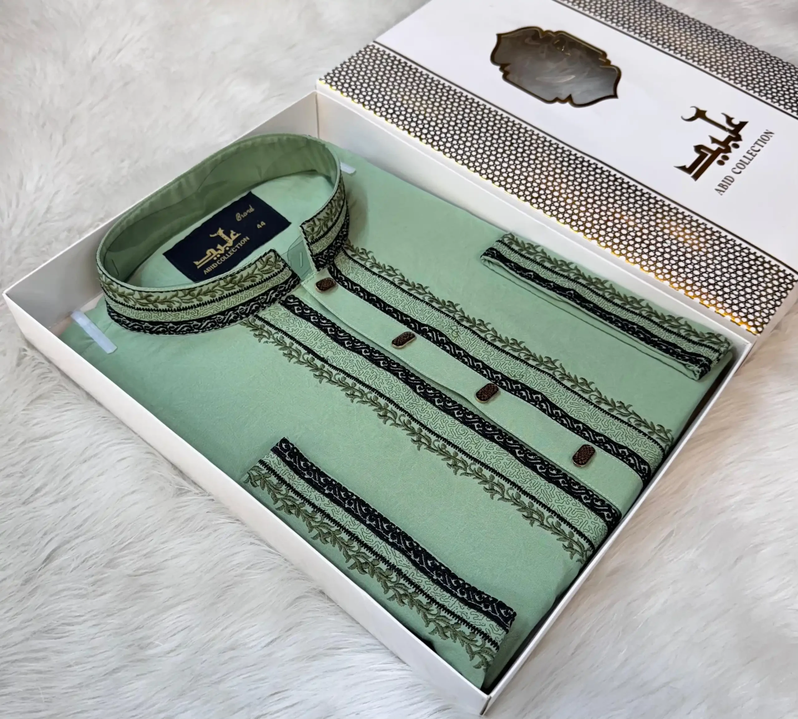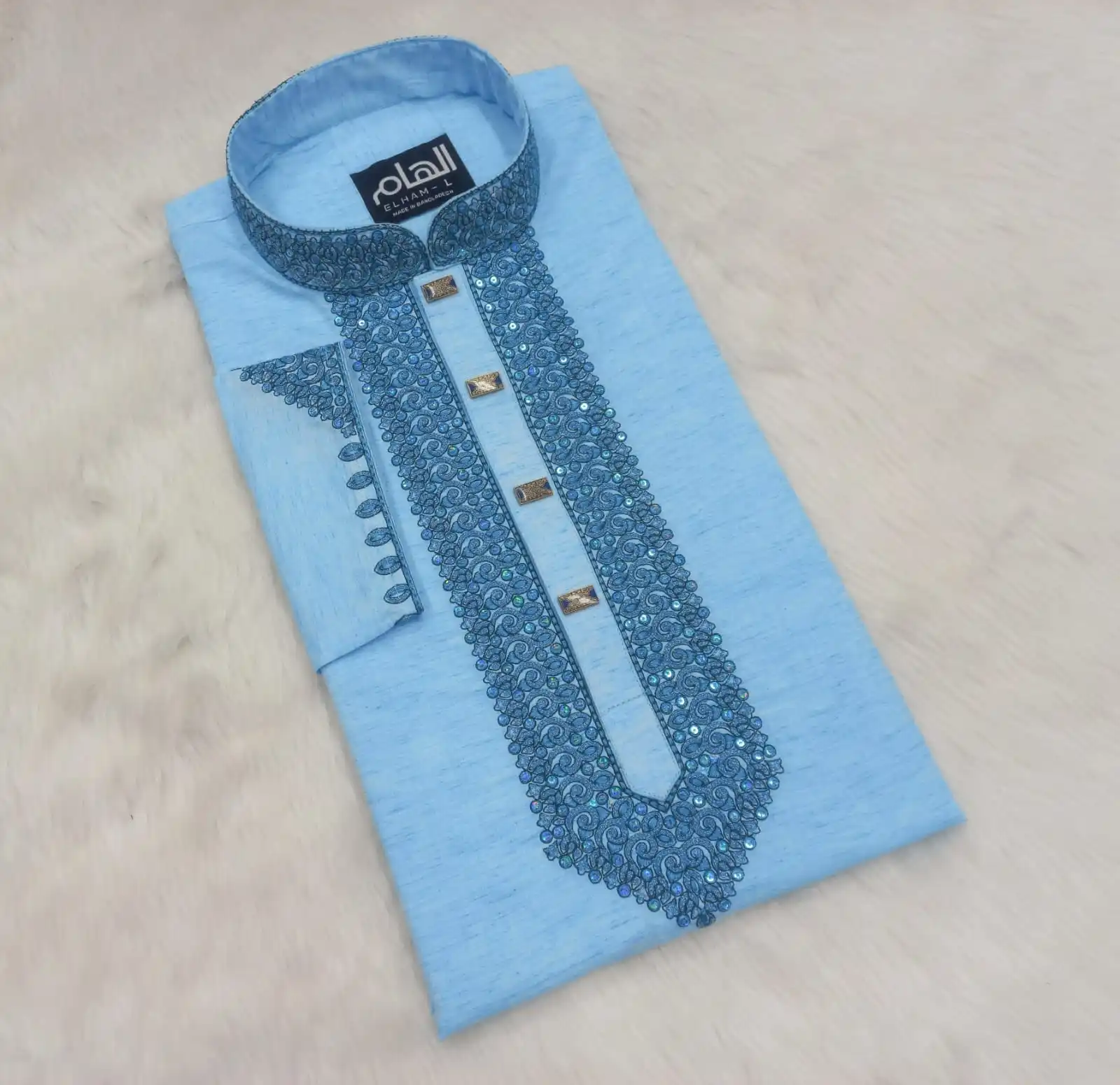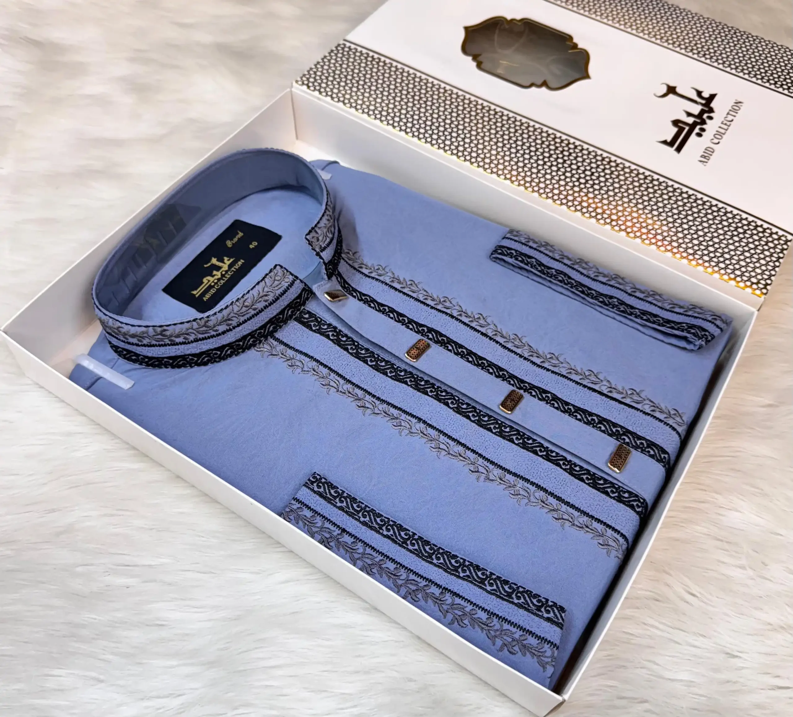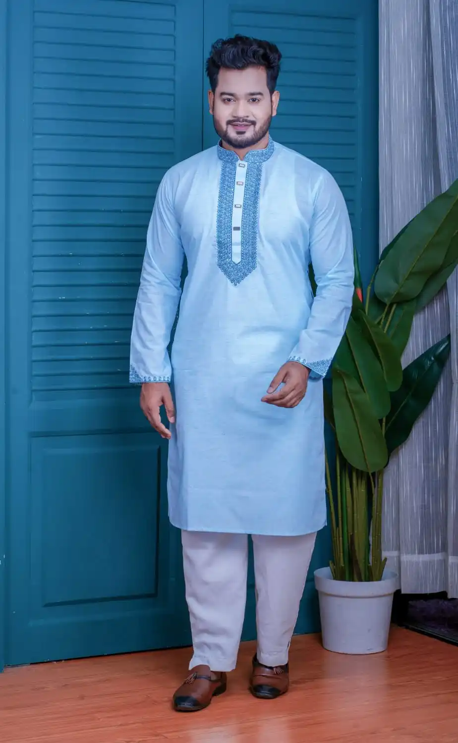 Premium Cotton Embroidery Panjabi (Sky Blue)