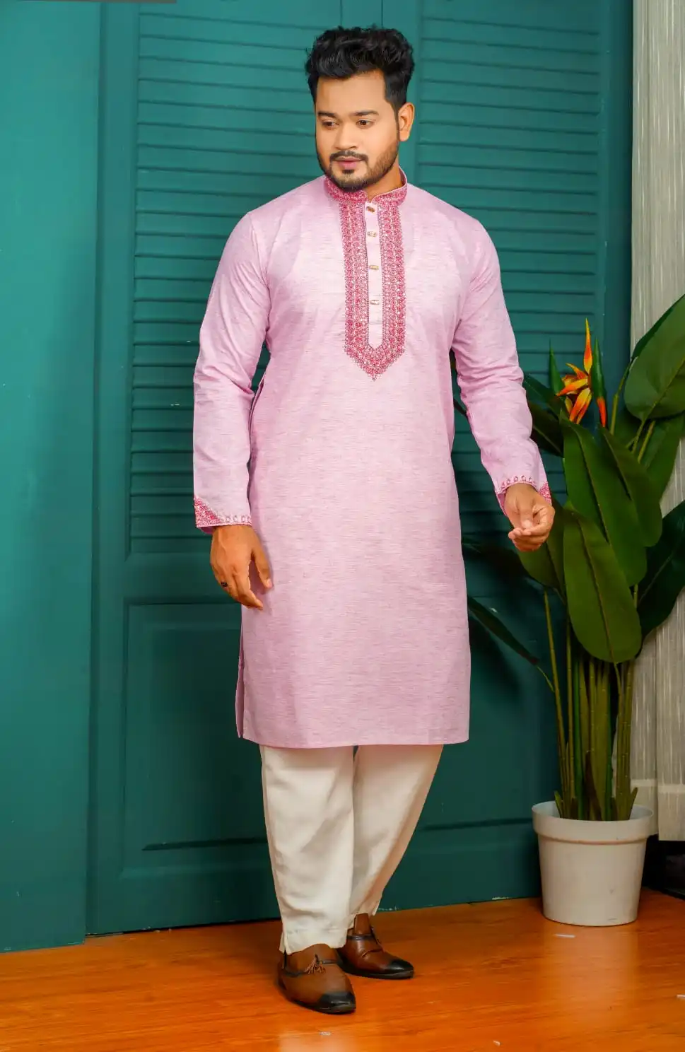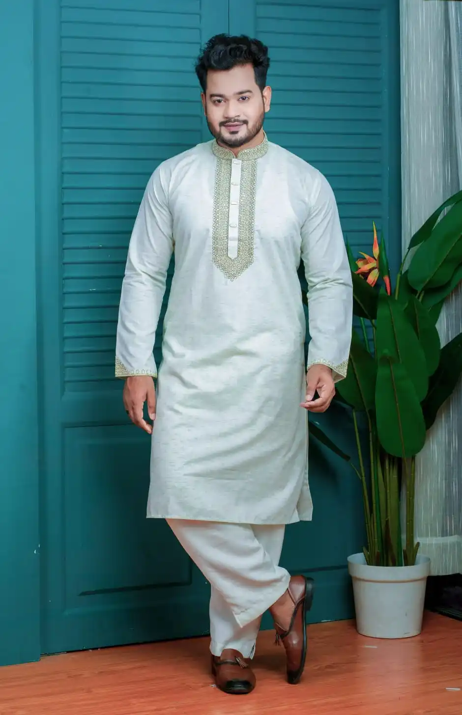 Premium Cotton Embroidery Panjabi (Light Lemon)